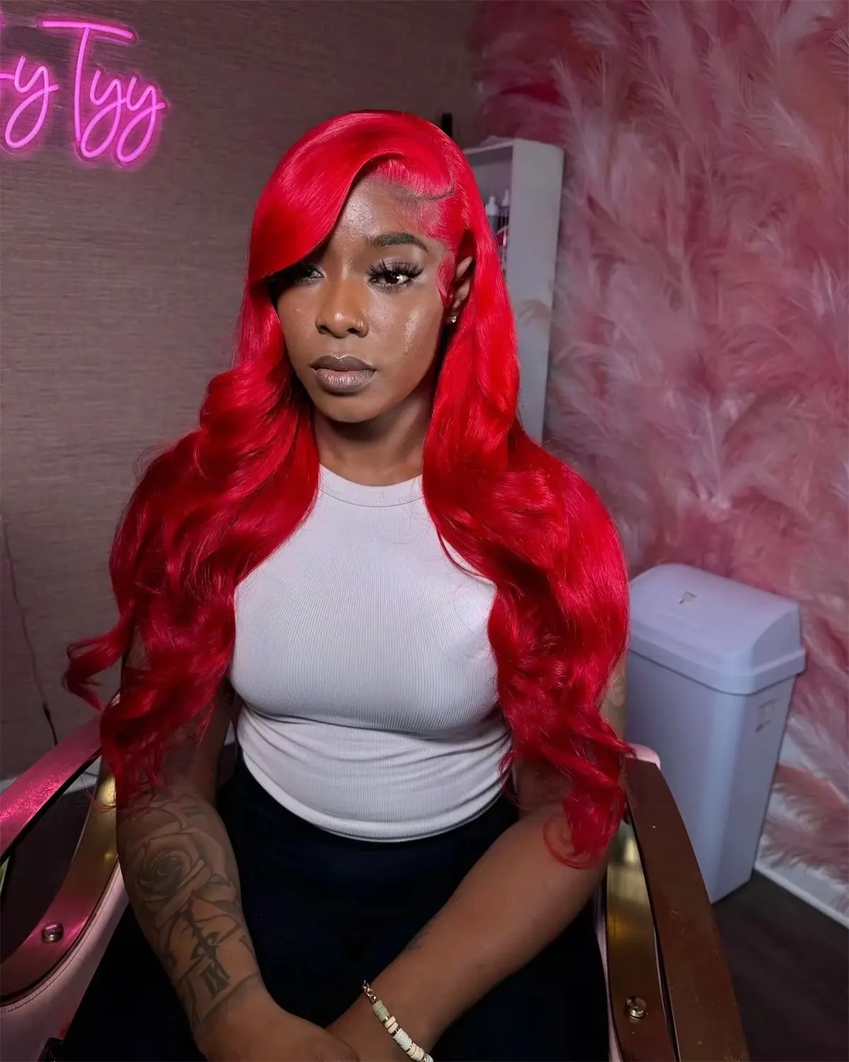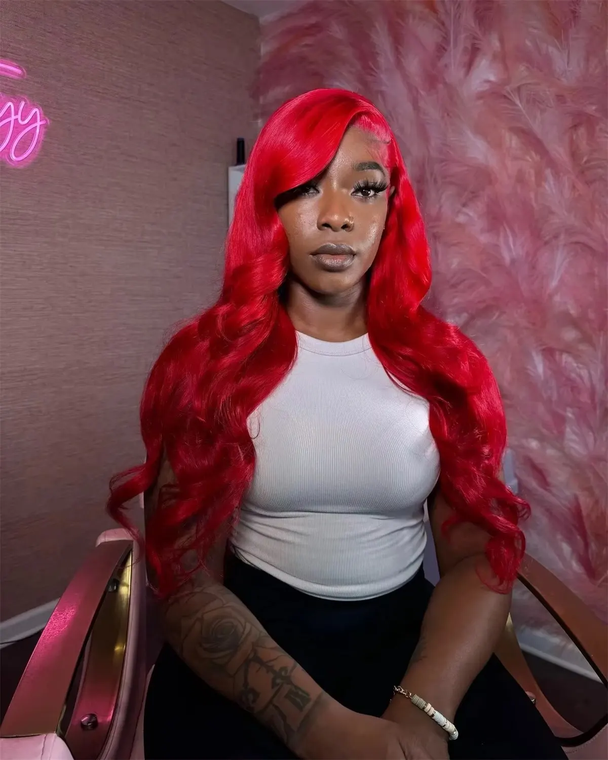 Hot Red Brazilian Red Colored Body Wave Hd Lace Frontal Human Hair Wig