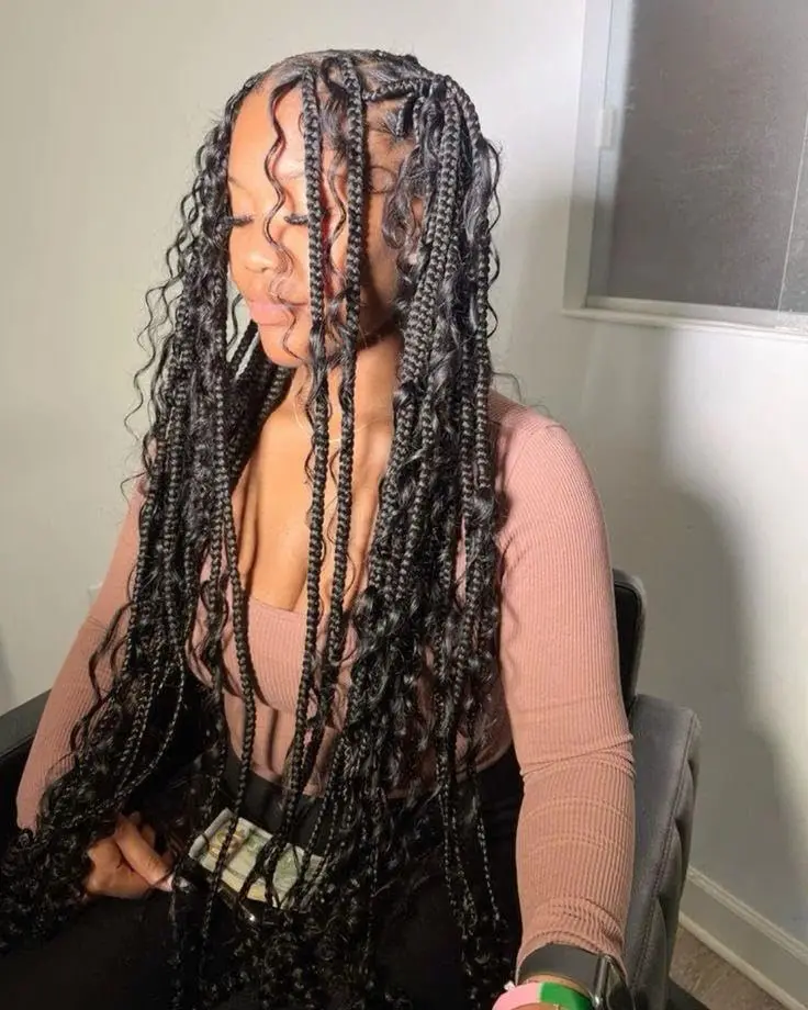 This braiding boho hair is a game change. It's so soft and bouncy full hair from top to end no tangled. It can last a long time after being braided. There is so many style that you can do such as boho locs,knotless braid, box braids with human hair, cornrows and twist. Definely a great choice if you are looking for a good quality of hair